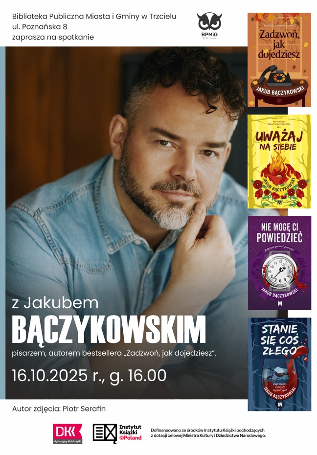 W jesienne popołudnie Bibliotekę Publiczną M. i G. w Trzcielu odwiedził autor książek obyczajowo – psychologicznych Jakub Bączykowski więc mieliśmy okazję poznać twórczość naszego gościa. Swoją przygodę literacką pisarz rozpoczął od cyklu trzytomowego „Podlasie”, w skład którego wchodzą następujące powieści: „Stanie się coś złego”, „Uważaj na siebie”, „Chce dla ciebie jak najlepiej”. Są to powieści […]